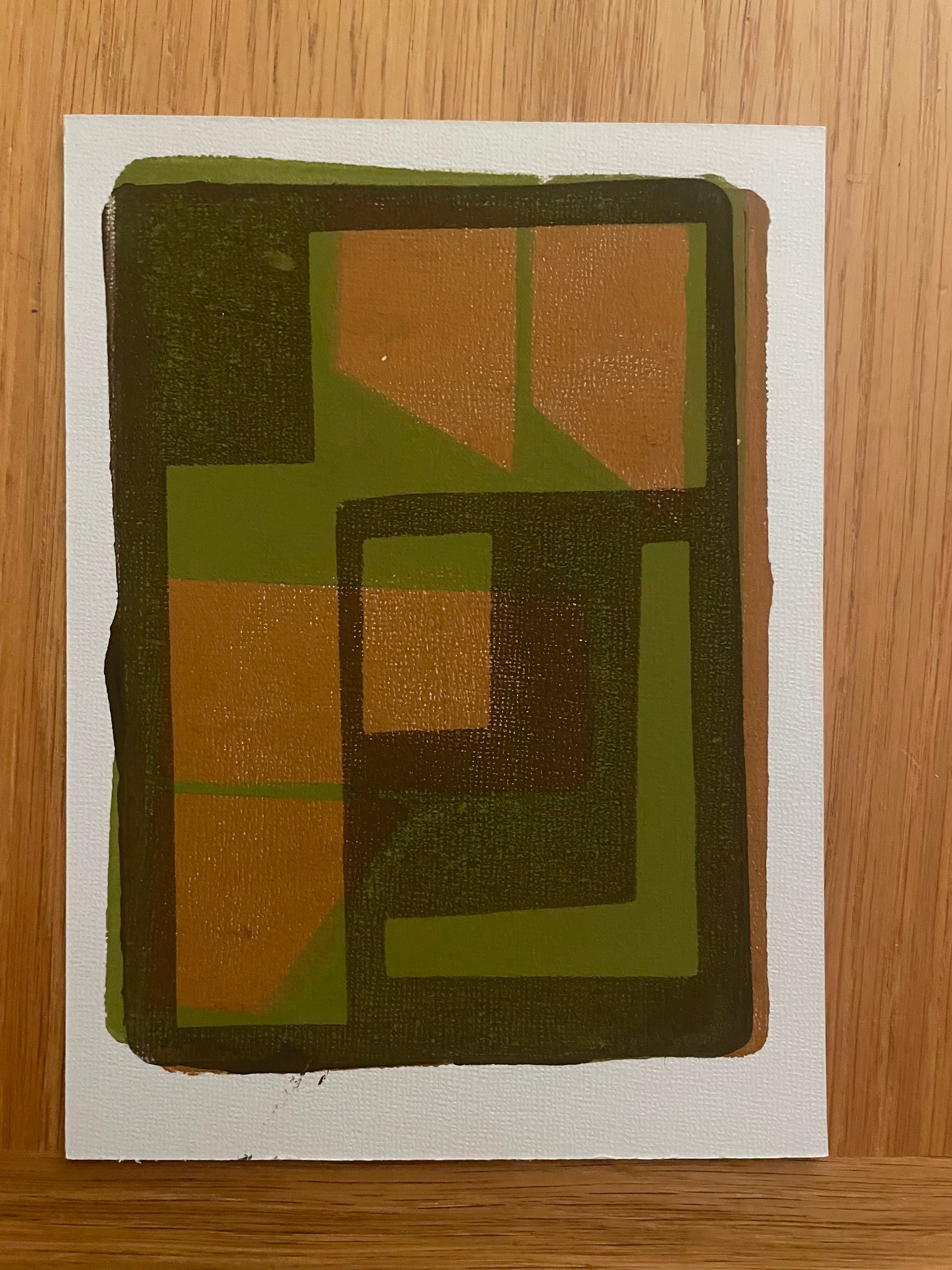 Brown, tan , olive green on thick textured card.
